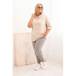 Dámská blůza Plus Size s bavlnou volného střihu s vodním výstřihem béžová