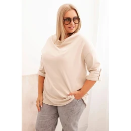 Dámská blůza Plus Size s bavlnou volného střihu s vodním výstřihem béžová