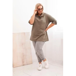 Dámská blůza Plus Size s bavlnou volného střihu s vodním výstřihem khaki