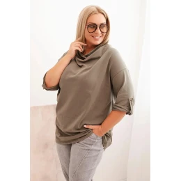 Dámská blůza Plus Size s bavlnou volného střihu s vodním výstřihem khaki