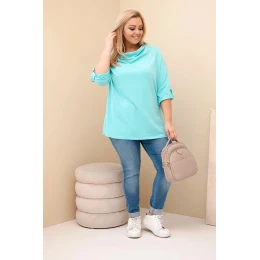 Dámská blůza Plus Size s bavlnou volného střihu s vodním výstřihem mátová