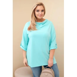 Dámská blůza Plus Size s bavlnou volného střihu s vodním výstřihem mátová