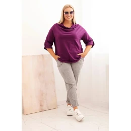 1. Dámská blůza Plus Size s bavlnou volného střihu s vodním výstřihem tmavě fialová
