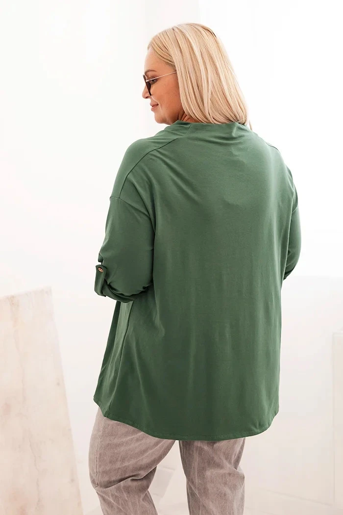 Dámská blůza Plus Size s bavlnou volného střihu s vodním výstřihem tmavě zelená