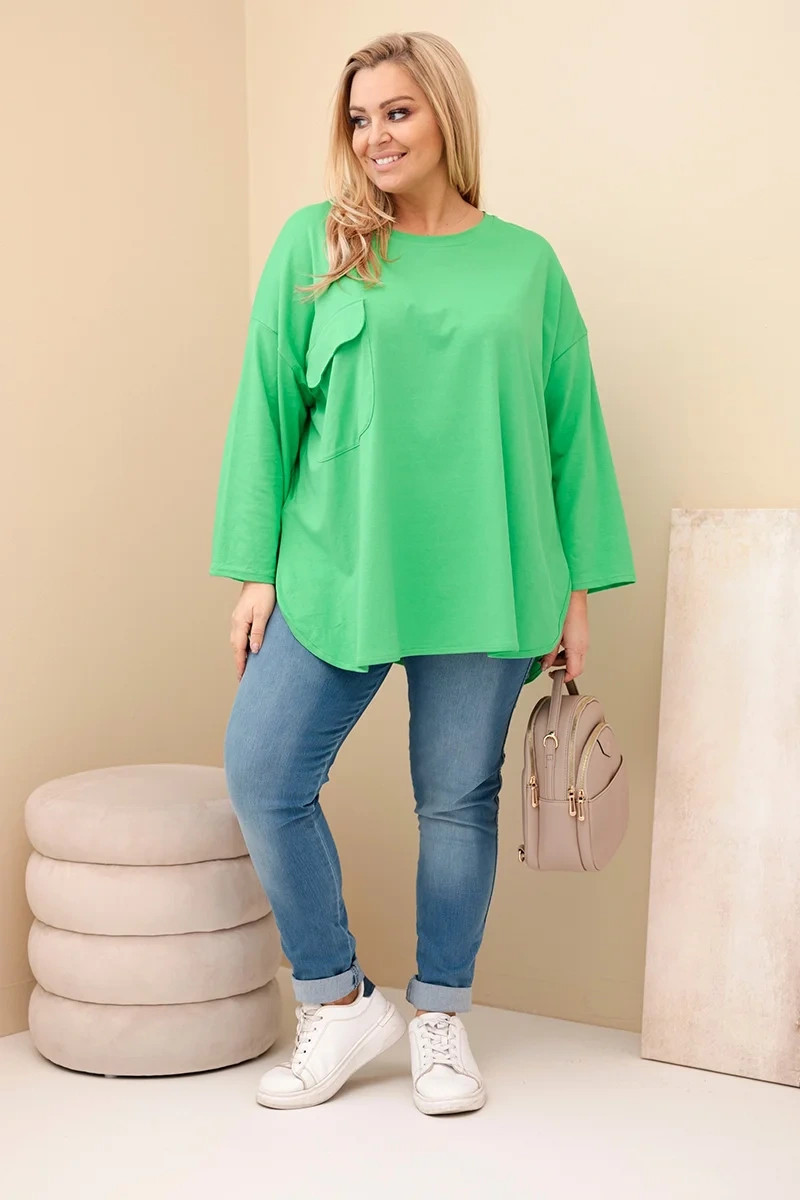 Dámská blůza Plus Size s kapsou a ohrnovacími rukávy z bavlny světle zelená