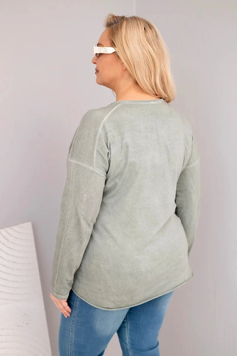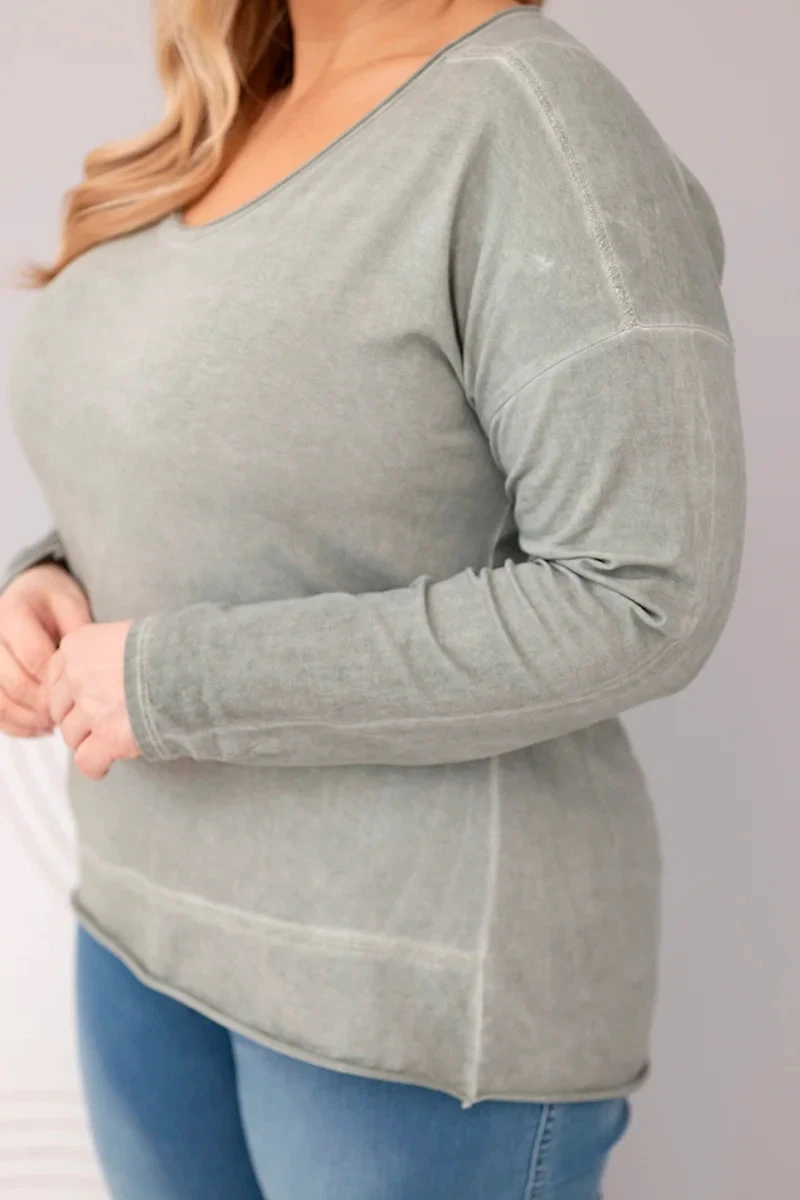 Dámská blůza Plus Size s V výstřihem a delším zadním dílem khaki