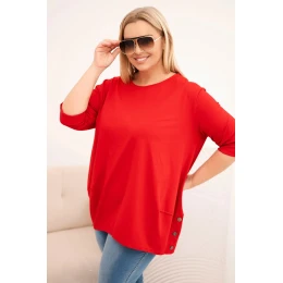Dámská blůza Plus Size z bavlny s ozdobnými knoflíky a ohrnutými rukávy červená