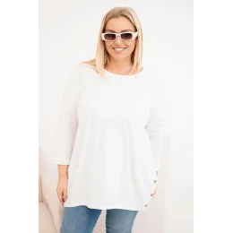 Dámská blůza Plus Size z bavlny s ozdobnými knoflíky a ohrnutými rukávy ecru