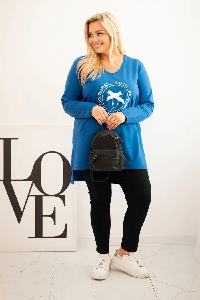Dámská blůza s delším zadním dílem a potiskem model 21397675 - K-Fashion