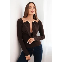 Dámská blůza s drapovaným výstřihem a dlouhým rukávem hnědá