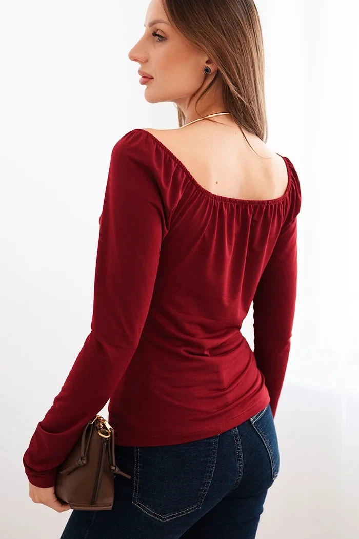Dámská blůza s model 21731242 výstřihem a dlouhým rukávem bordó - K-Fashion
