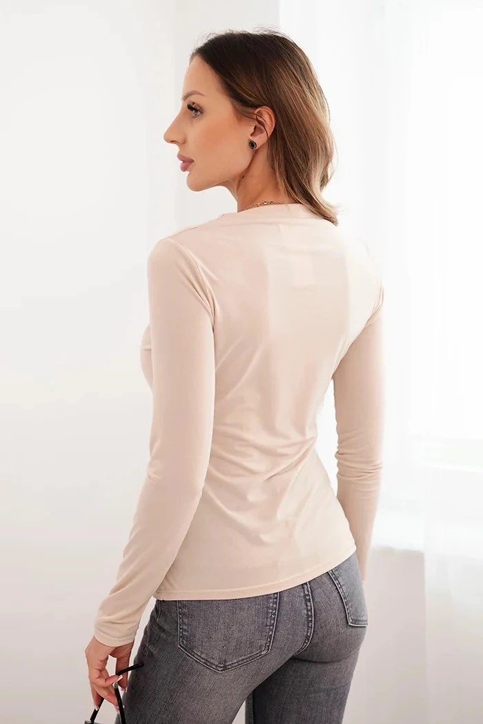Dámská blůza s ozdobnou sponou model 21468708 z viskózy béžová - K-Fashion