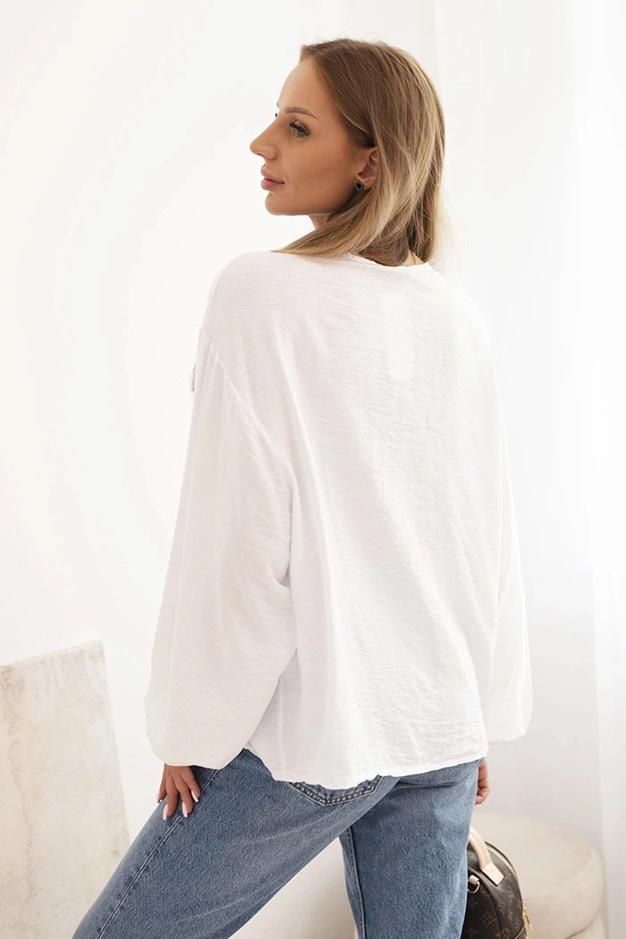 Dámská blůza s viskózou s nařaseným výstřihem a ozdobou bílá