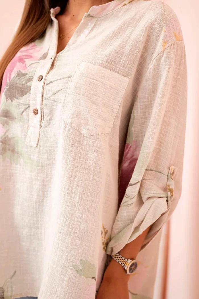 Dámská blůza z bavlny s květinovým vzorem a knoflíky béžový