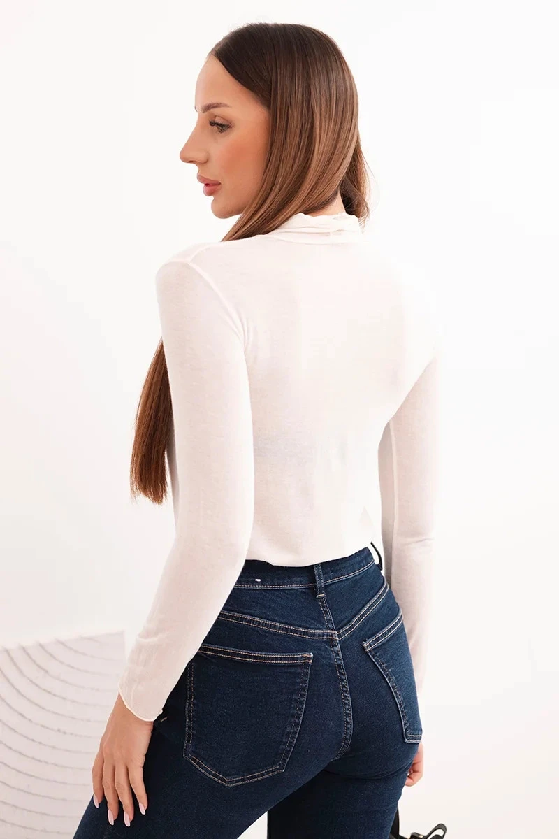 Dámská blůza z kašmíru s rolákem a dlouhým rukávem světlá béžová
