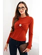 Elegantní dámská blůza z viskózy je stylovým návrhem pro ženy, které mají rády módní detaily a přiléhavý střih. Model se vyznačuje efektním řasením na poprsí, zakončeným ozdobnou broží, která dodává celku výjimečný charakter. Dlouhý rukáv a kulatý výstřih činí blůzu ideální jak pro večerní styling, tak do práce či na schůzky.