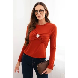 Dámská blůza z viskózy přiléhavá s řasením a broží hnědá