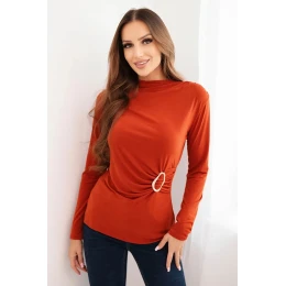 Dámská blůza z viskózy s nařasením a ozdobnou sponou ruda