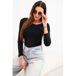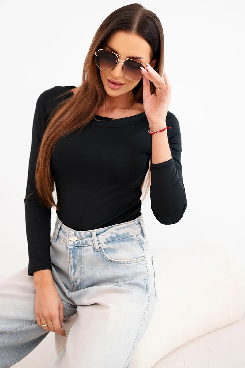 Dámská blůza z viskózy s širokým výstřihem a dlouhým rukávem černá