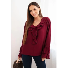 Dámská blůza z viskózy s volány a dlouhým rukávem bordová