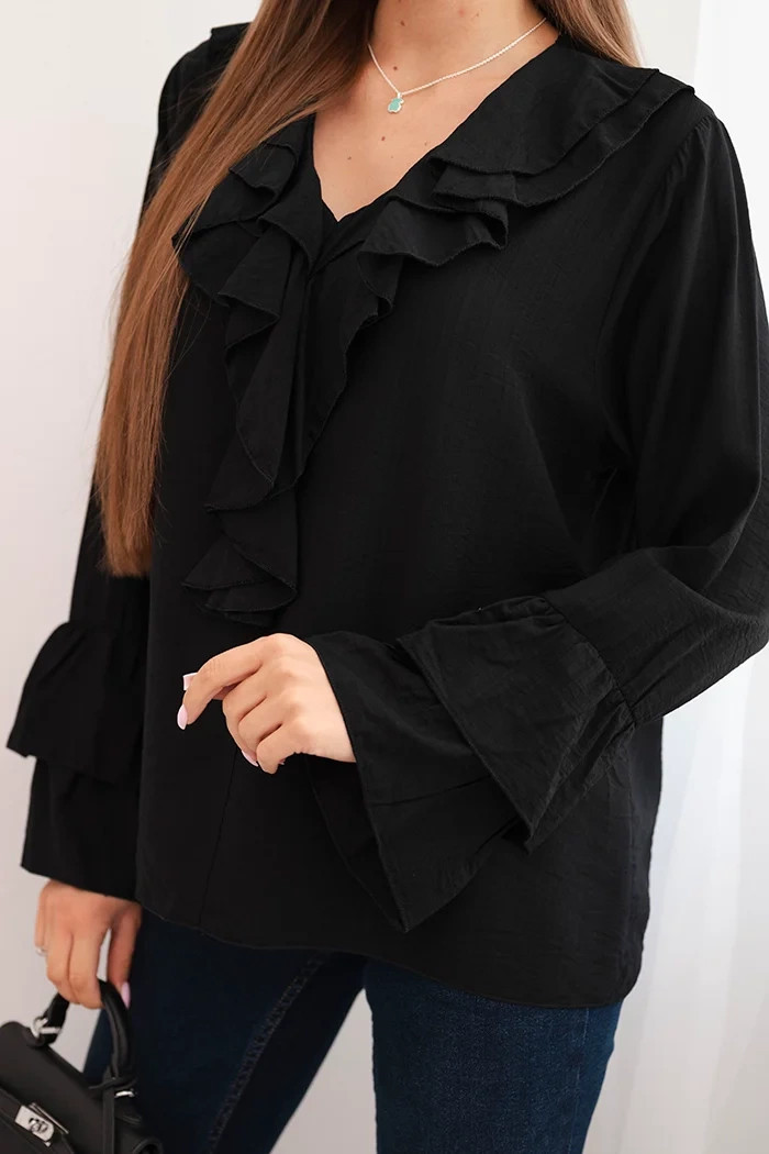 • Dámská blůza z viskózy s volány a dlouhým rukávem černá