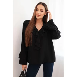 Dámská blůza z viskózy s volány a dlouhým rukávem černá