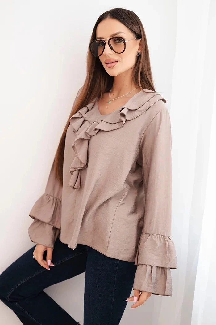 Dámská blůza z viskózy s volány a dlouhým rukávem fango