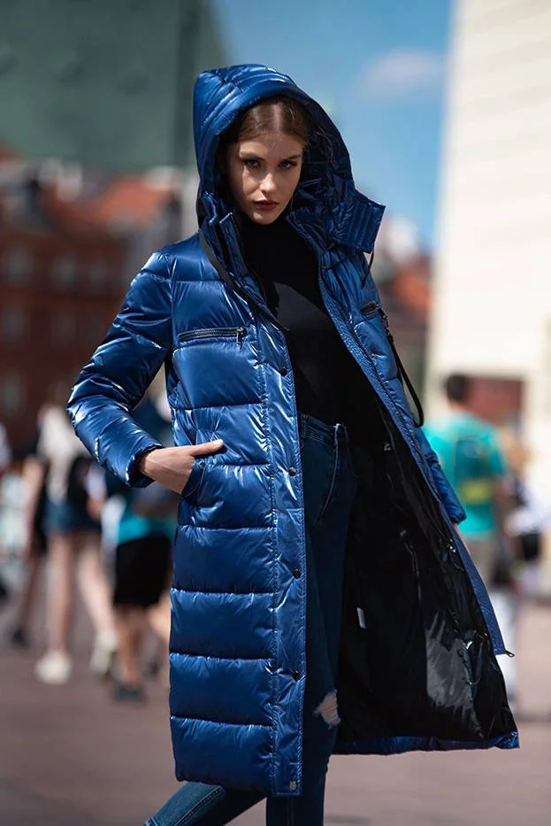 DAMSKA BŁYSZCZĄCA KURTKA PUCHOWA GRANATOWA model 21242662 - Ann Gissy