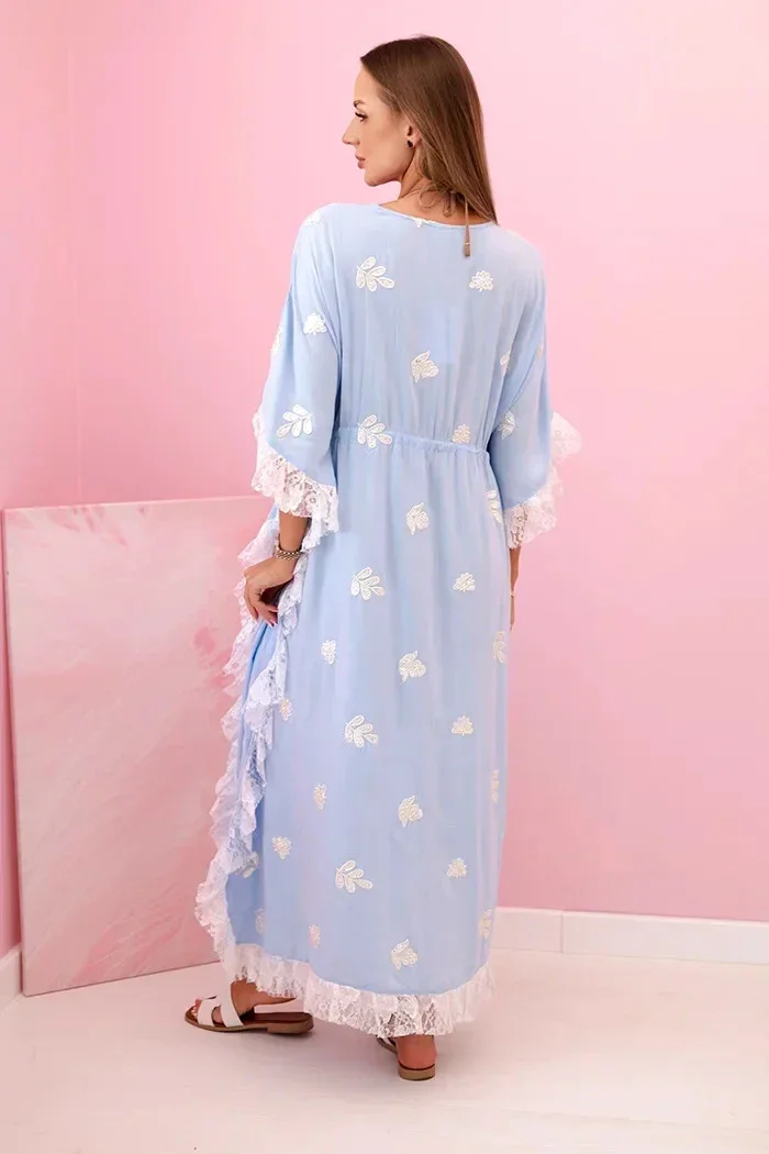 Přidání recenze k Dámská boho viskózová pláštěnka s krajkou modrý