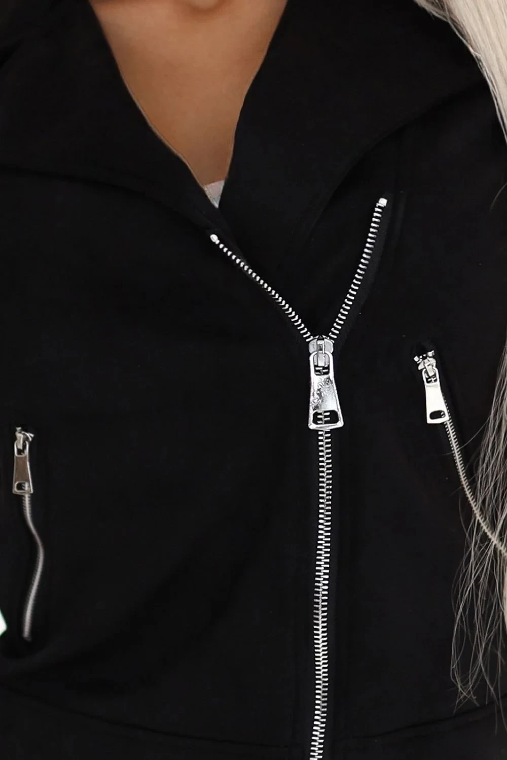 Dámská bunda 481-2 Numoco basic - černá barva - z semišového materiálu - dlouhé rukávy - zapínání na zip