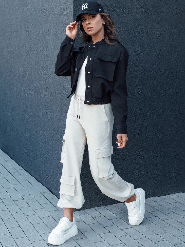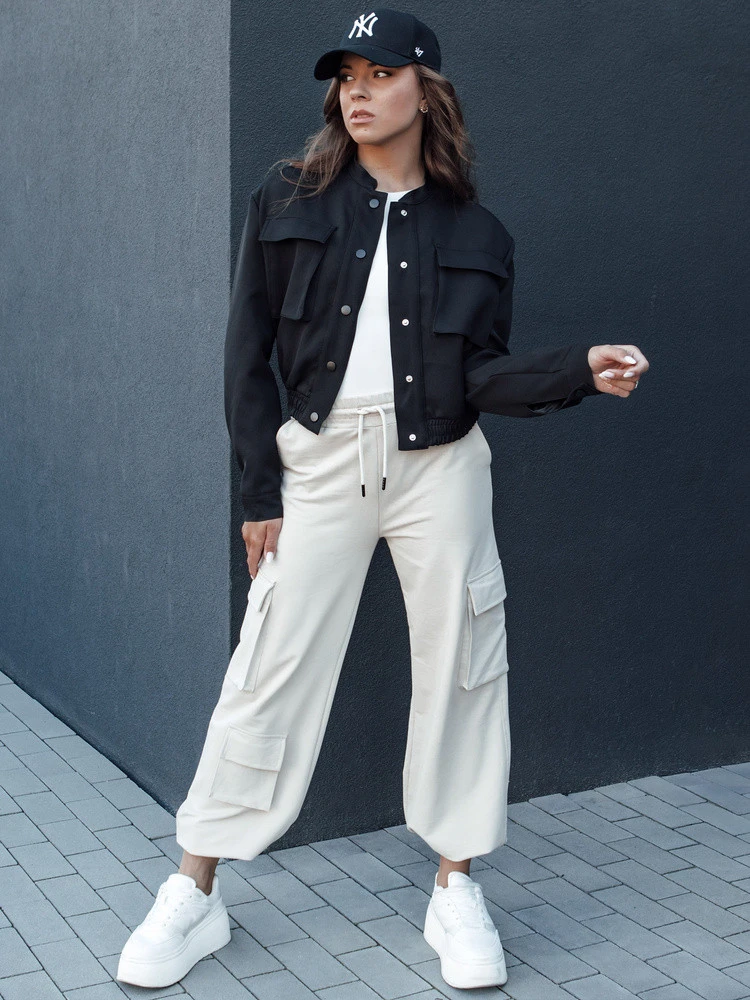 Objevte funkčnost a styl v dámské bomber bundě PRIEV! Zapíná se na patentky a je vybavena praktickými velkými kapsami, které jsou ideální pro uložení nezbytných věcí. Žebrovaný lem zajišťuje dokonalé přizpůsobení a pohodlí, zatímco pohodlné rozepínací manžety umožňují nastavit šířku rukávů. Perfektně se hodí ke každému outfitu!