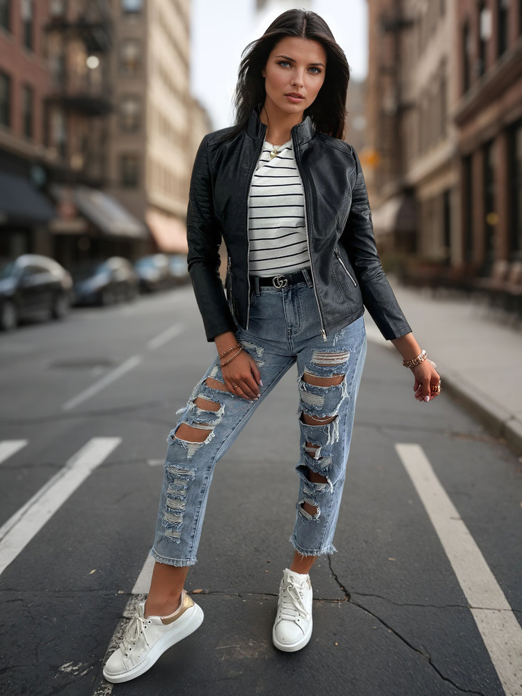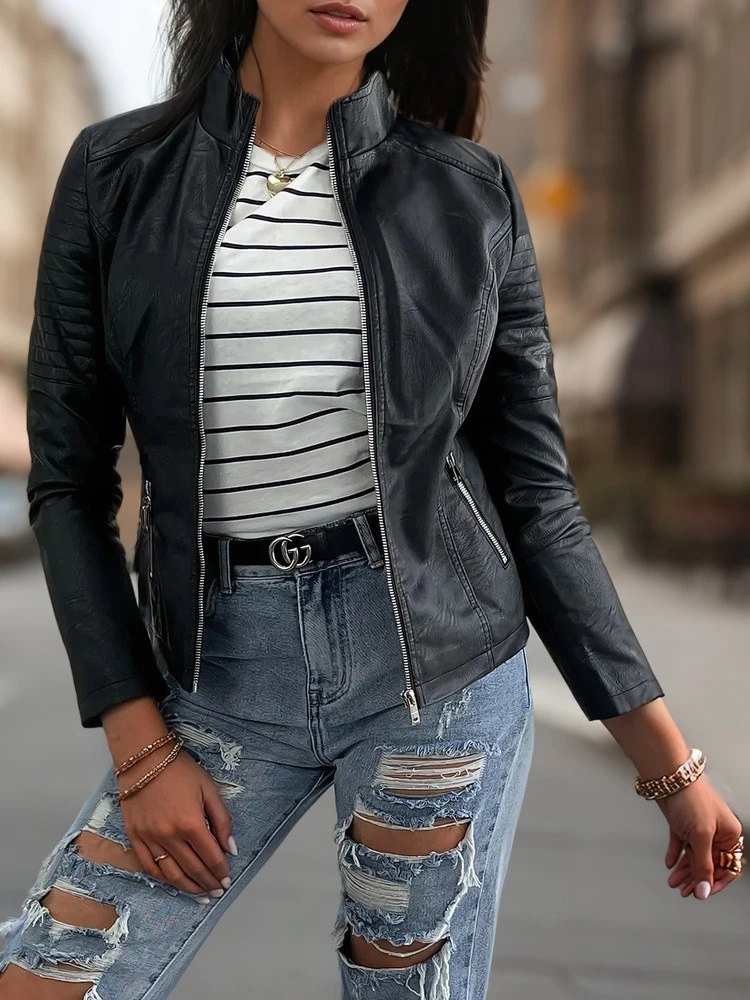 Klasická bunda, která doplní každou každodenní i náročnější stylizaci. Bunda má stojatý límec a dvě kapsy na zip. Jemný pas opticky zeštíhluje siluetu. MUST HAVE této sezóny!