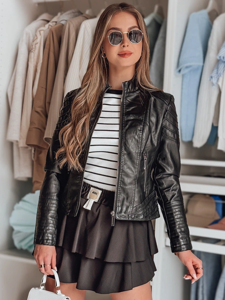 Tato dámská bunda z ekokůže je nezbytnou součástí šatníku každé ženy, ideální pro každodenní streetový styl, s kapsami na zip, rovně zakončenými rukávy a stojáčkem. Stylový kousek, který je naprostým MUST HAVE!