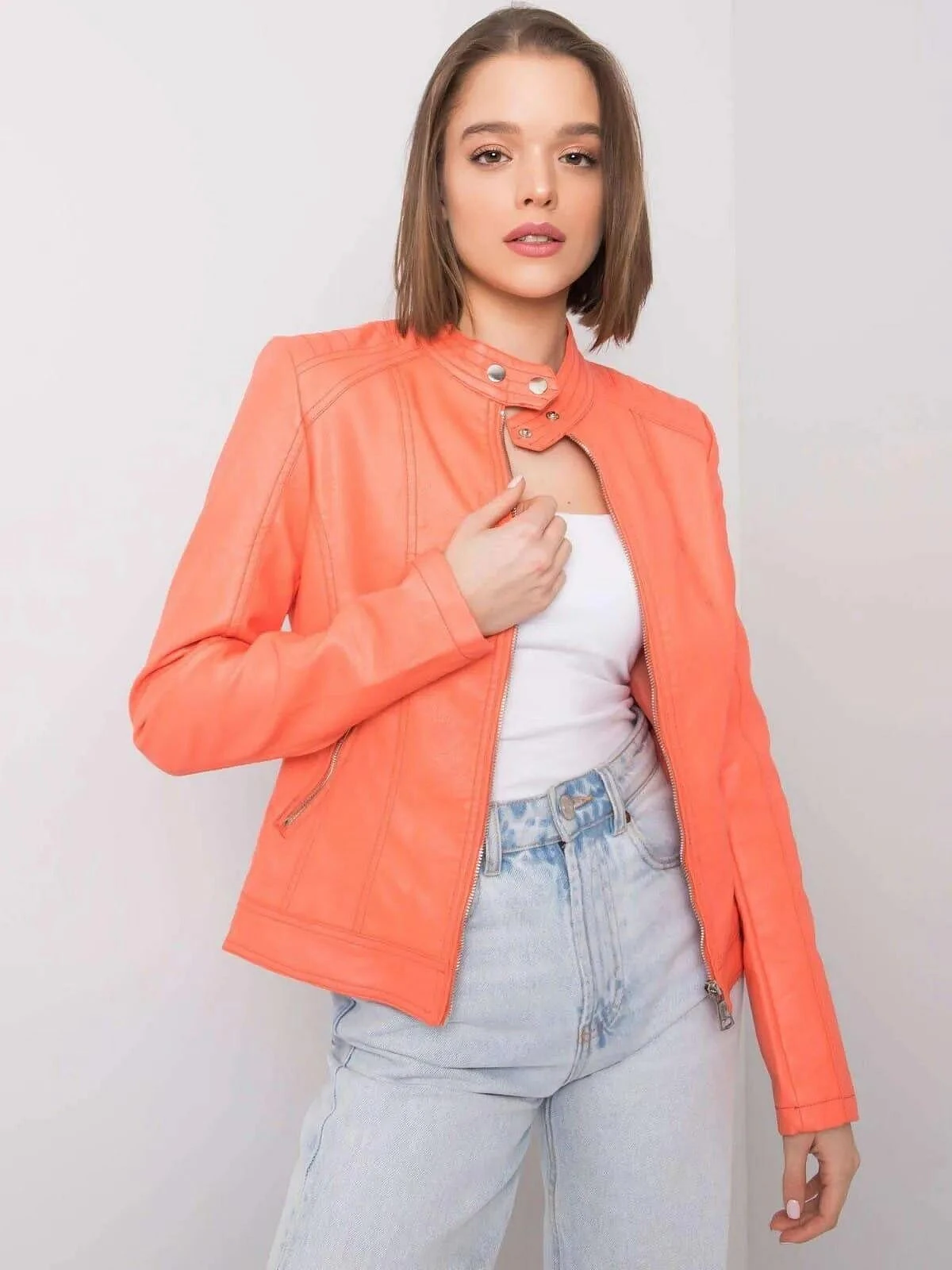 Dámská koženková bunda, krátká, dlouhé rukávy. Prošívaná. Na zip.