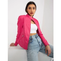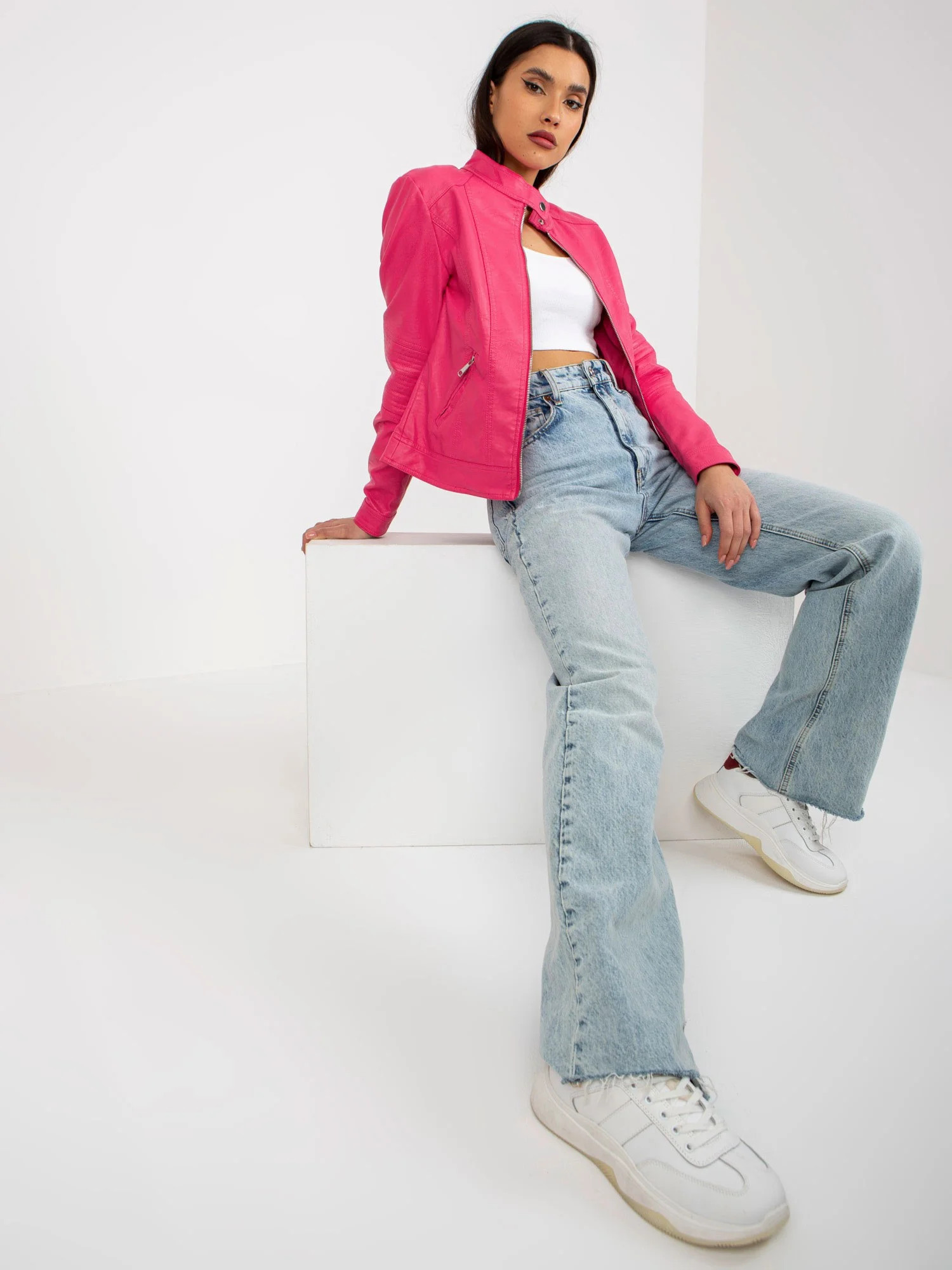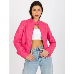 Tmavě růžová dámská cyklistická bunda z ekokůže s kapsami .