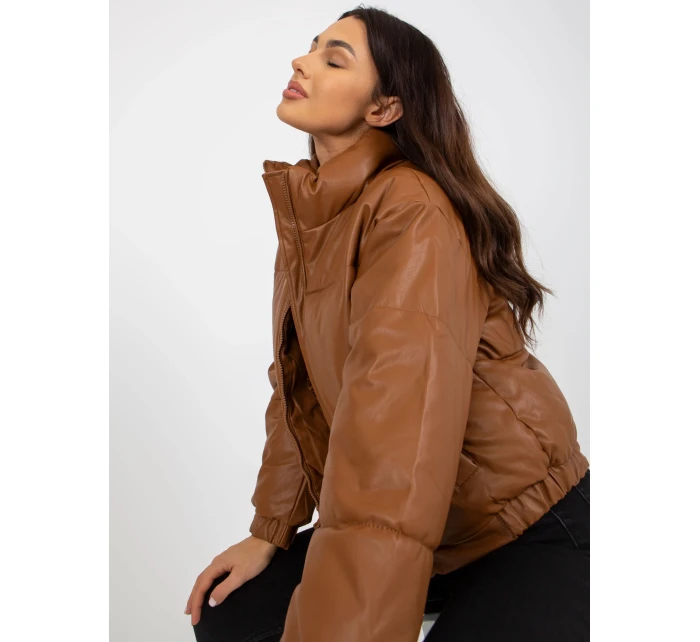 Světle hnědá bunda z ekokůže bez kapuce .