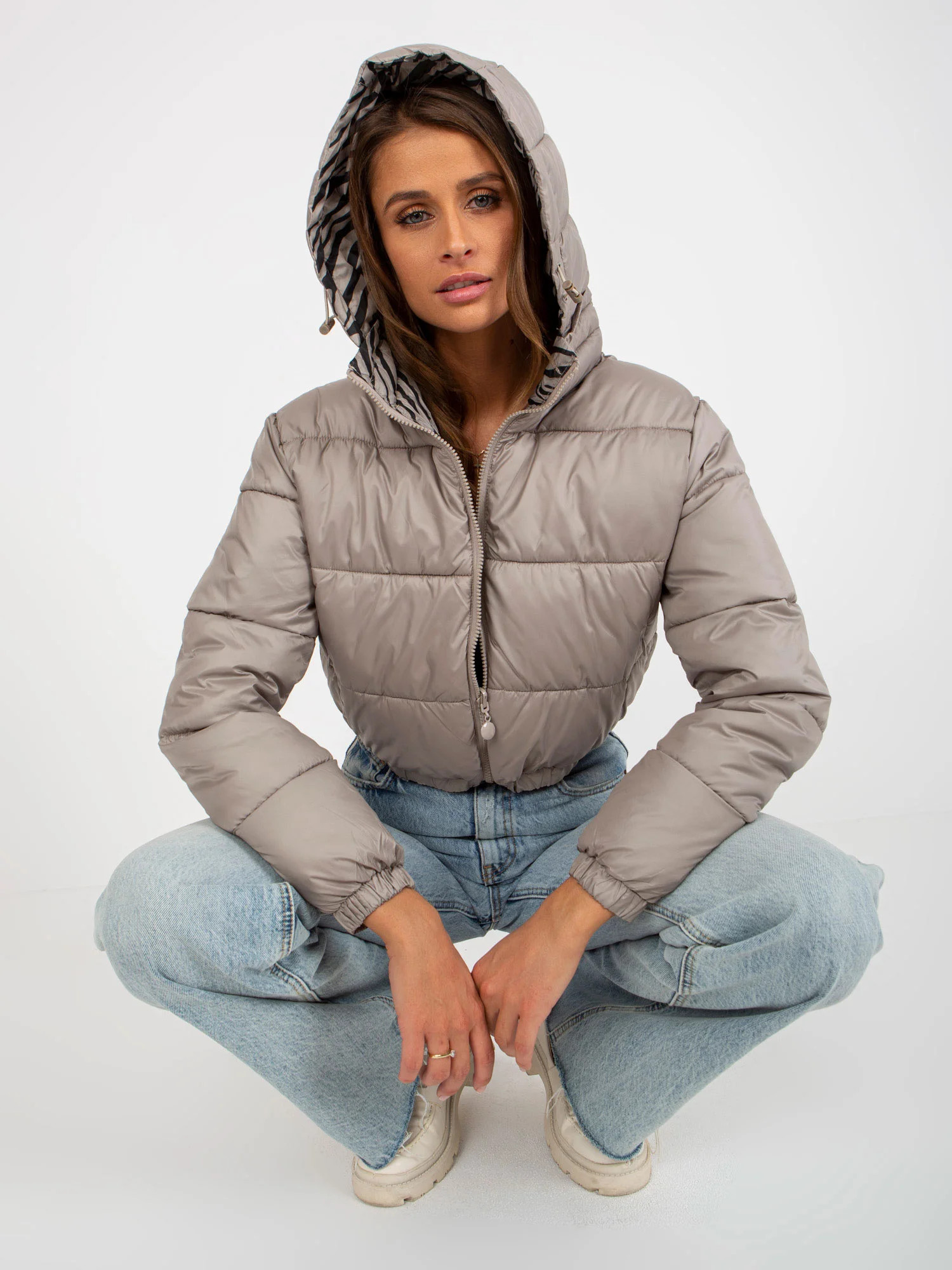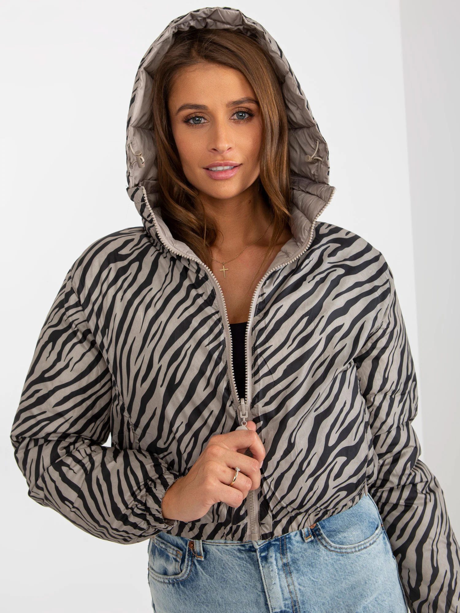 Rozměry bundy ve velikosti S měřené na plocho: šířka v podpaží - 47 cm, délka rukávu - 61 cm, celková délka - 63 cm.