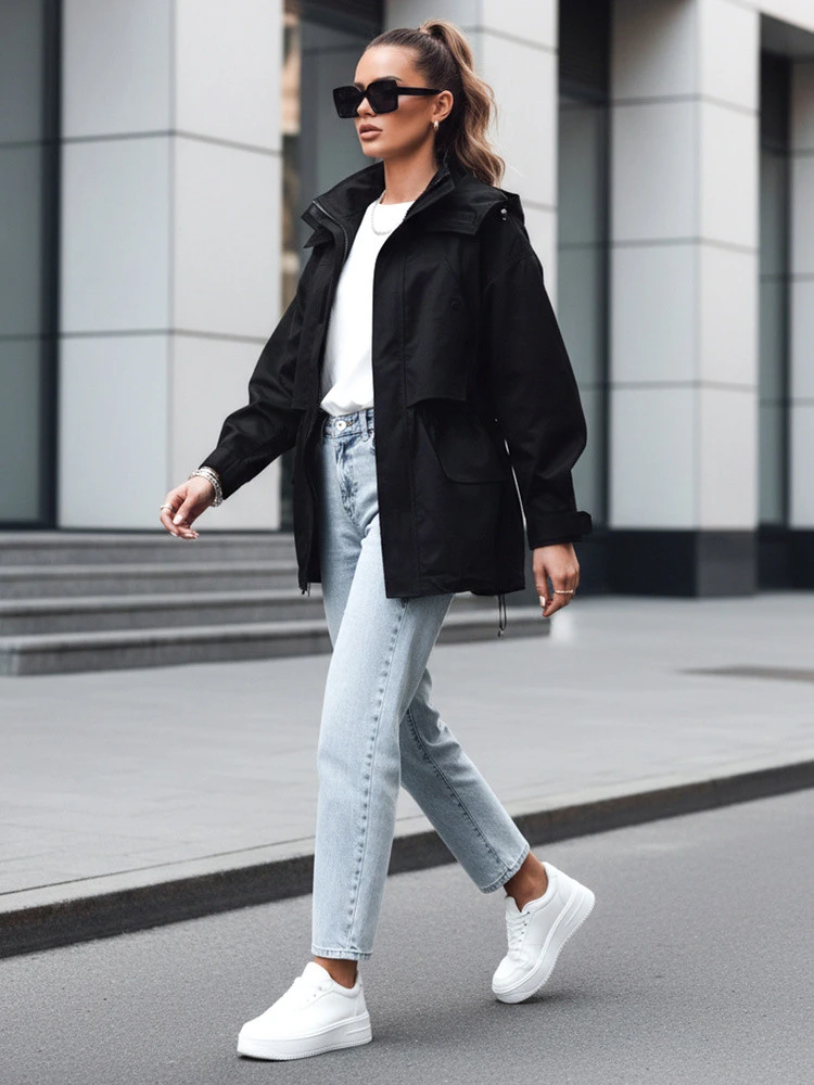 Tato dámská bunda s funkčním střihem parka se osvědčí pro každodenní nošení v proměnlivém počasí. Konstrukce založená na rovném střihu s nastavitelným pasem umožňuje pohodlné přizpůsobení siluetě. Použitý materiál poskytuje ochranu před větrem a lehký tepelný komfort. Model je vhodný pro nošení s městským stylem po většinu přechodného období.