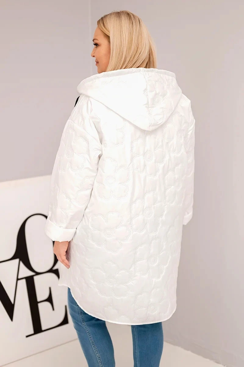 Dámská bunda Plus Size prošívaná s kapucí a nápisem HOPE bílá