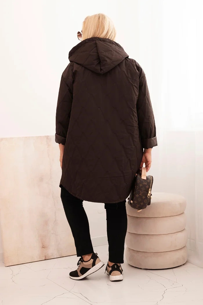 Stylová dámská prošívaná bunda ve velikosti plus size je vynikající volbou pro ženy nosící větší velikosti – od XL do 4XL. Její volný, oversized střih zajišťuje maximální komfort nošení a skvěle se přizpůsobuje postavě, neomezuje pohyb. Model se vyznačuje geometrickým prošíváním, které opticky zeštíhluje siluetu, a módní kapucí se stahovací šňůrkou v leopardím vzoru. Zip a praktická kapsa na prsou podtrhují moderní a funkční charakter bundy.
