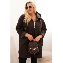 • Dámská bunda Plus Size prošívaná s kapucí a nápisem HOPE hnědá