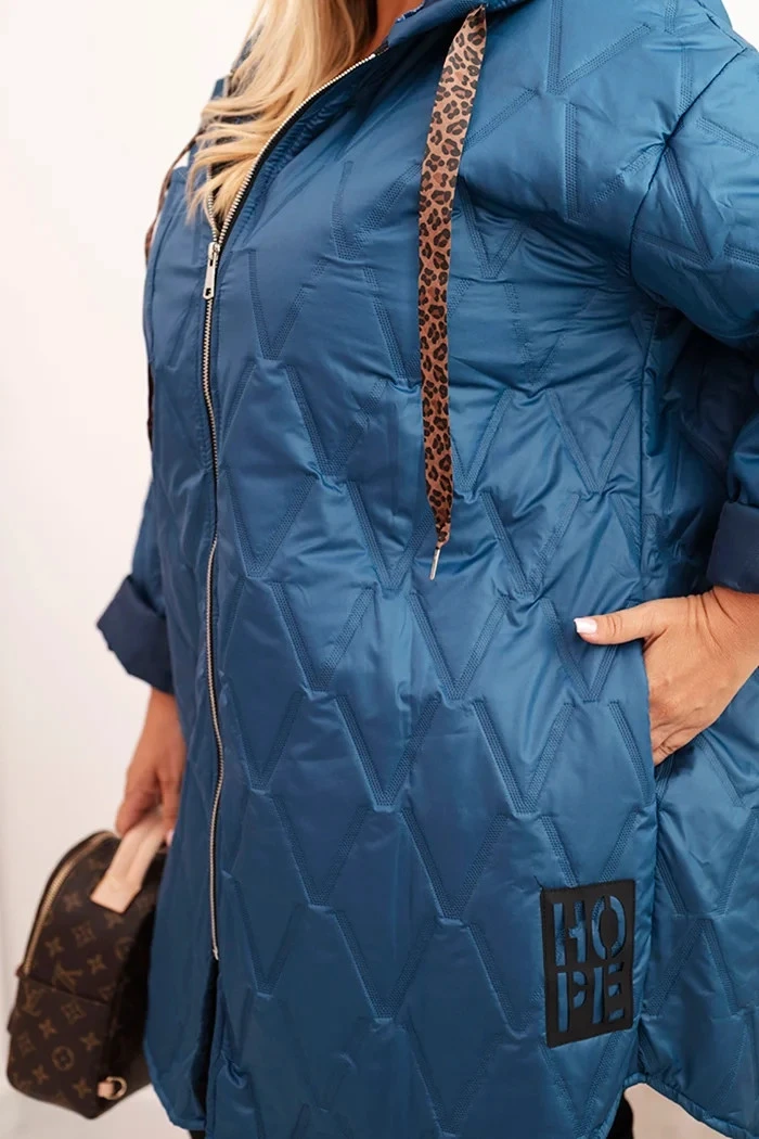 • Dámská bunda Plus Size prošívaná s kapucí a nápisem HOPE jeansová