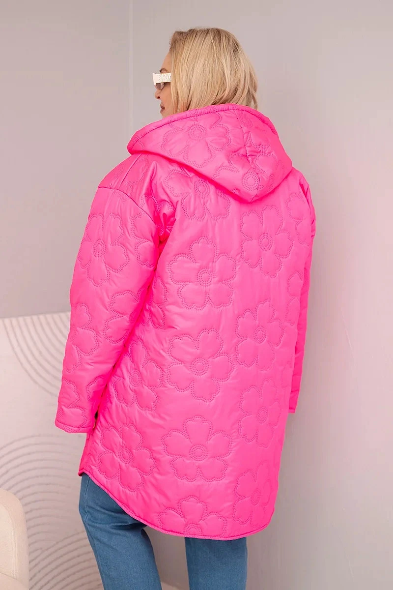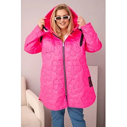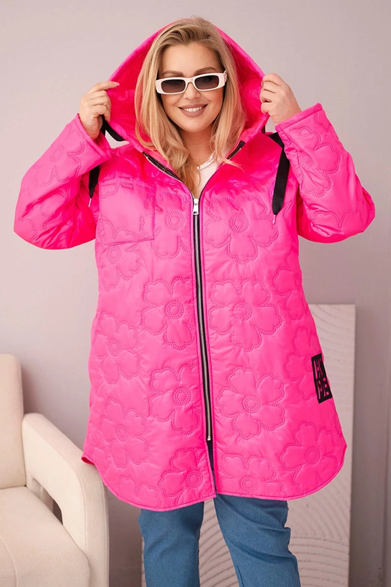 Dámská bunda Plus Size prošívaná s kapucí a nápisem HOPE růžový neon