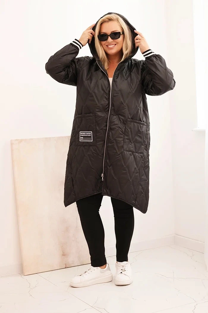 Dámská bunda Plus Size prošívaná s kapucí a sportovními manžetami černá