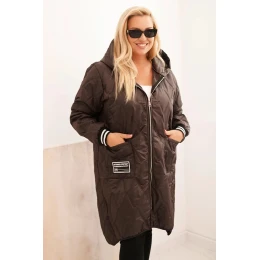 • Dámská bunda Plus Size prošívaná s kapucí a sportovními manžetami hnědá