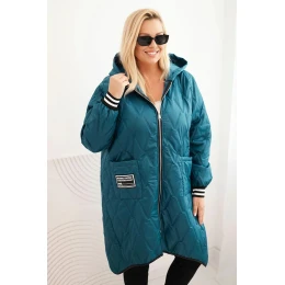 • Dámská bunda Plus Size prošívaná s kapucí a sportovními manžetami mořská