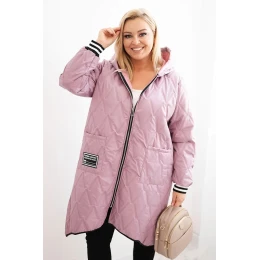 • Dámská bunda Plus Size prošívaná s kapucí a sportovními manžetami tmavě růžová