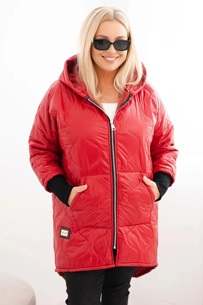 • Dámská bunda Plus Size prošívaná s kapucí červená