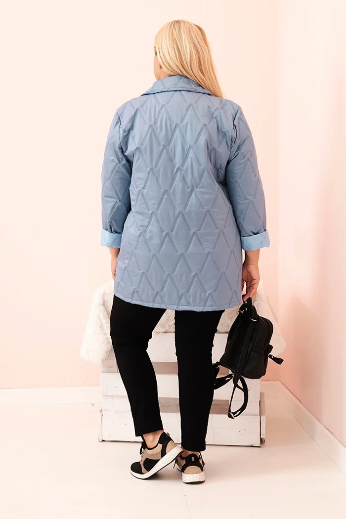 Stylová prošívaná dámská bunda ve střihu připomínajícím sako je skvělou volbou pro ženy, které si cení elegance a pohodlí ve velikosti plus. Model zapínaný na dekorativní knoflík, s klasickým límcem a geometrickým prošíváním, je ideální na přechodné období – jaro nebo podzim. Díky volnému střihu skvěle sedí na postavách ve velikosti XL, 2XL a 3XL, zajišťující komfort nošení bez pocitu omezení.