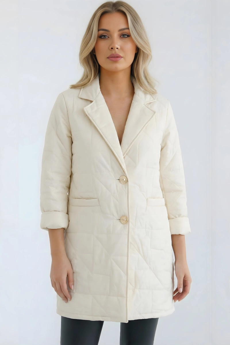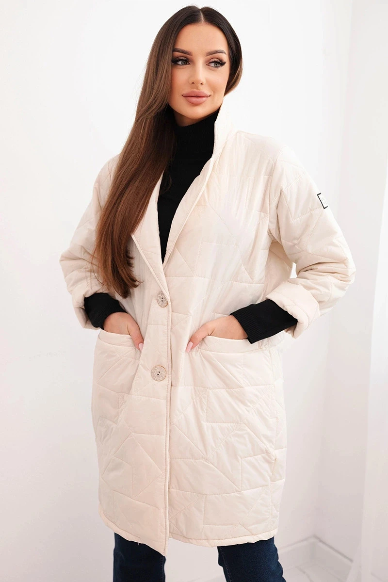 3. Dámská bunda Plus Size prošívaná s ozdobnými knoflíky a límcem jasno béžová